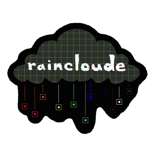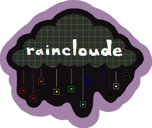 I drew Raincloude's first and current logo which features Raincloude's name and rain drops. The rain represents Raincloude's micro sales function (one cent per minute) and the color is for people's talents and personalities. They're great on their own and awesome when used together for things. These colors are also the original color layouts used for Raincloude.